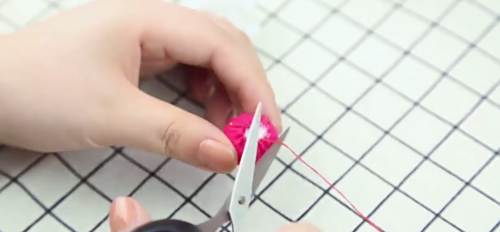 15对折吧直线的一边用针线缝合,把草莓的一圈用平针缝拉紧,塞进棉花。
