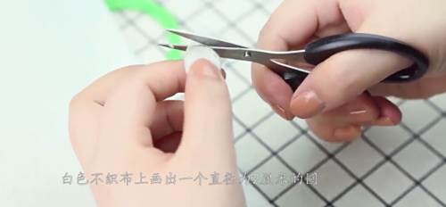 10白色不织布上画出一个直径为2cm的圆,剪下来。
