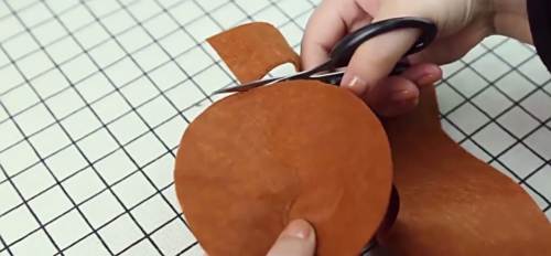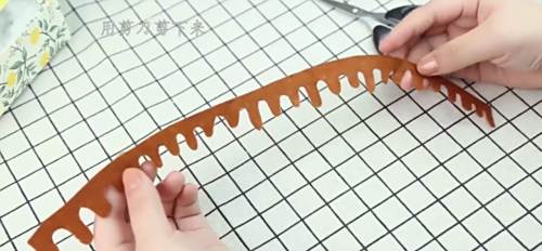3咖啡色不织布上画除蛋糕的花纹,并用剪刀剪下来。