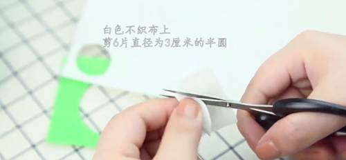 12白色不织布上剪6片,直径为3cm的半圆。
