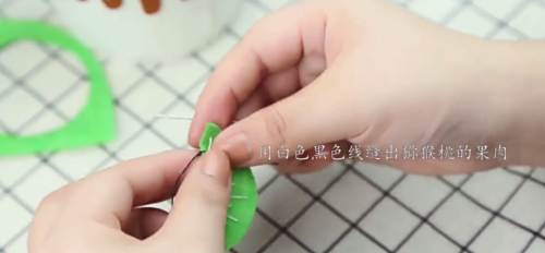 11对折剪下来,用白色黑色线缝出猕猴桃的果肉。