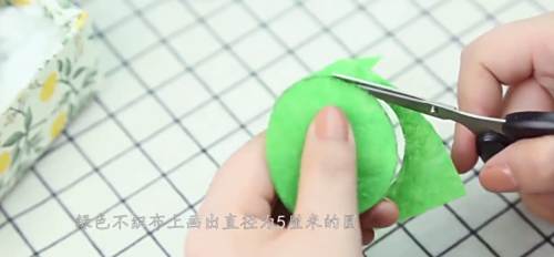 9绿色不织布画出直径为5cm的圆,并剪下来。