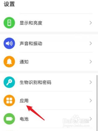 打开手机设置,点击进入应用的选项。