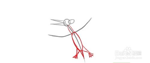 用椭圆形画出脖子和翼龙纤细的身体。再画出脚和小小的尾巴。