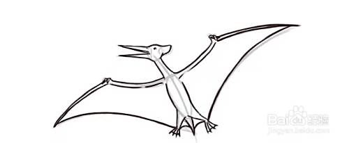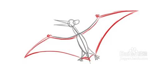 用曲线画三角形作为翼龙的翅膀。别忘了画出长着细小趾头的手部。