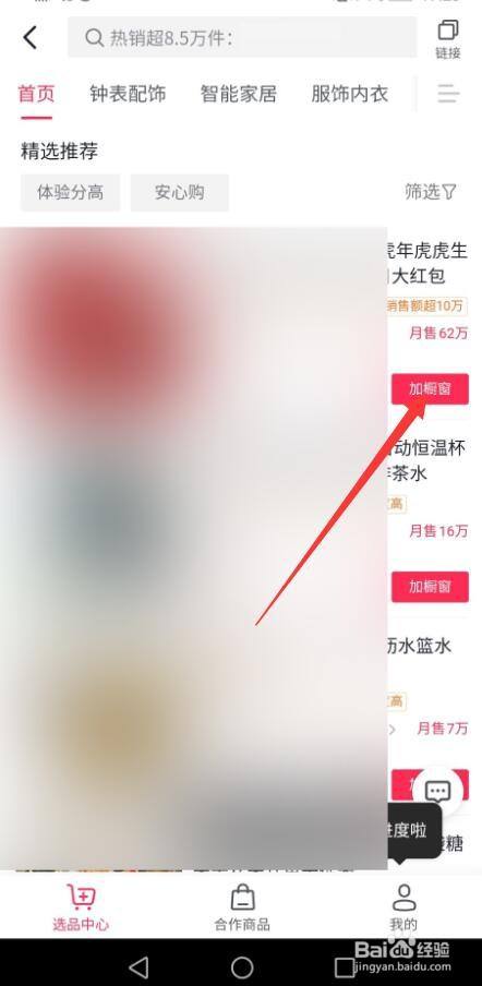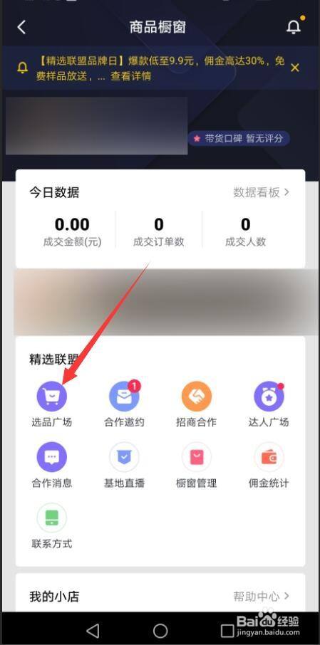 在商品橱窗中,点击选品广场