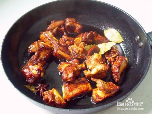 锅中加入姜,八角,香叶炒香后放入排骨翻炒,加入耗油,老抽翻炒出颜色