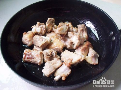 锅中加油烧热放入排骨煎至两面金黄盛出
