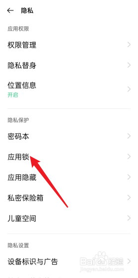 打开手机上的设置,打开隐私,选择隐私保护下方的应用锁,找到微信开启,即可设置微信锁屏密码。