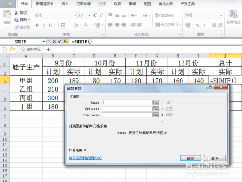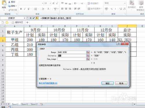 找到并选择sumif函数,点击确定按钮,弹出函数参数对话框窗口。