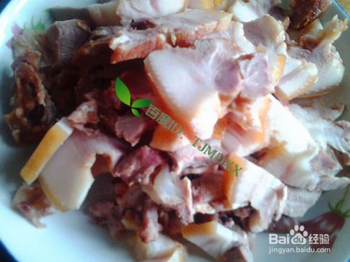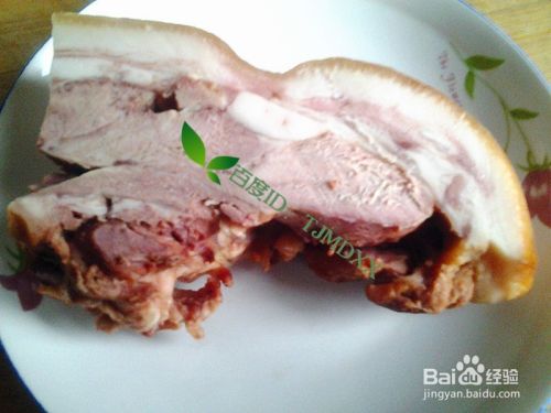 自己煮熟的猪头肉,凉了切成几次食用,取其中的一块备用。