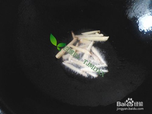 上炒菜锅加入适量的玉米油烧至5-6成熟,放入切好的生姜细条翻炒一会儿,出香味。