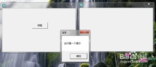 注意:第一个窗口(服务器)有一个按钮,我们点击它,那么第二个窗口会弹出提示框,提示内容为“这只是一个提示”