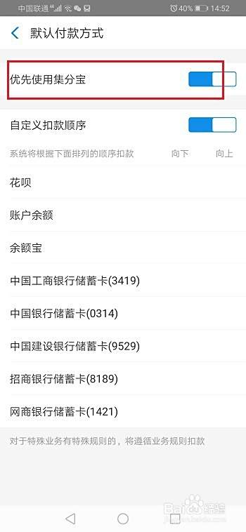 第五步进去之后,开启优先使用集分宝,这样在淘宝,线下购物的时候,集分宝会自动抵扣,如下图所示: