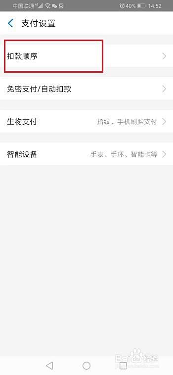 第四步进去支付设置之后,点击扣款顺序,如下图所示: