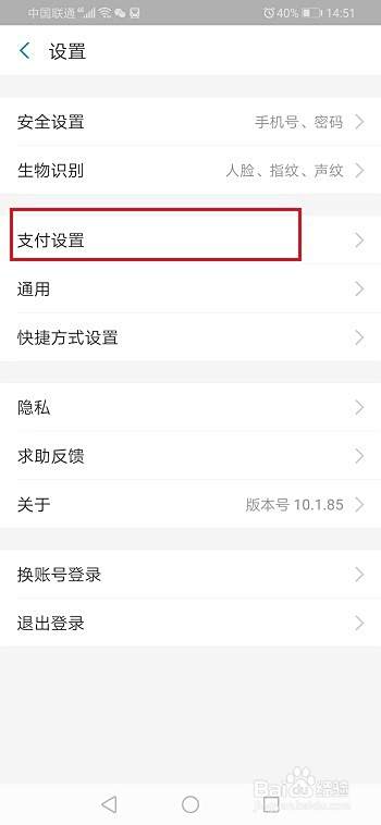 第三步进去支付宝设置界面,点击支付设置,如下图所示: