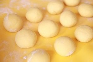 6面团切好后,用手稍微揉搓下,并搓成一个球状。