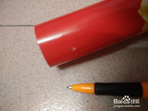 用没笔水的尖笔头把鞭炮筒一头穿一个洞。