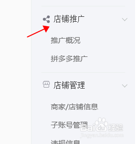 在左而菜单里下拉可以看到店铺推广这一项。