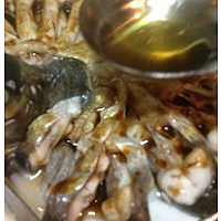 蒸好后倒掉多余的水份,捡除表明的葱姜丝,淋上调汁。