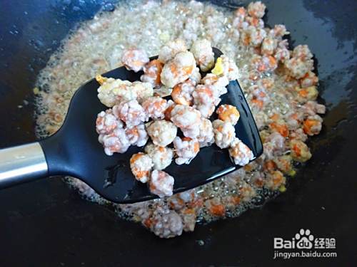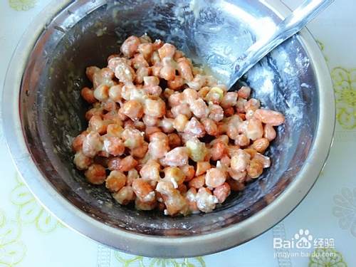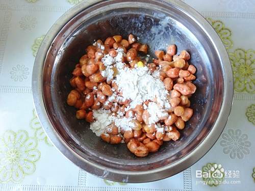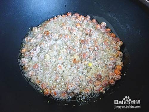 看到每一颗花生米外层都裹了淀粉就可以,不用过多过厚,也不用用漏勺过滤