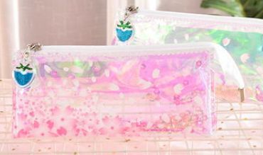 还可以加一个小手把,方便挂起来。缝侧边缝时夹一根布条,最后一个好看的流沙笔袋就完成了。