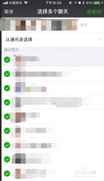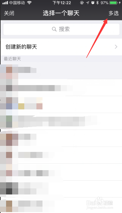 如果只是选择一个好友,那么只会发送给一个好友,所以我们点击右上角的多选。