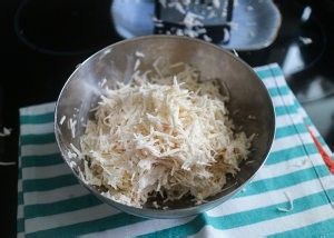 芋头擦成丝。我喜欢一部分擦得细点,一部分擦得粗一点,这样口感丰富些;