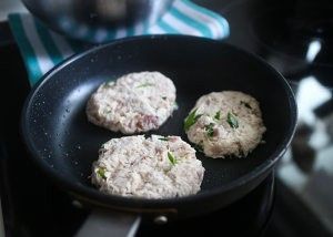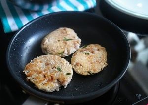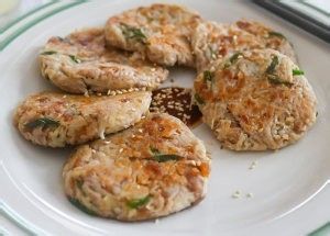 用不粘锅,热锅放油,油稍微放多点才会比较脆。如果想煎得好看些的话可以先用手揉成团,放入锅中,轻压至约半寸厚的饼。这个菜谱用的面粉很少,所以饼不要做得太大,会容易散开,约女生半个手掌大小最适合;