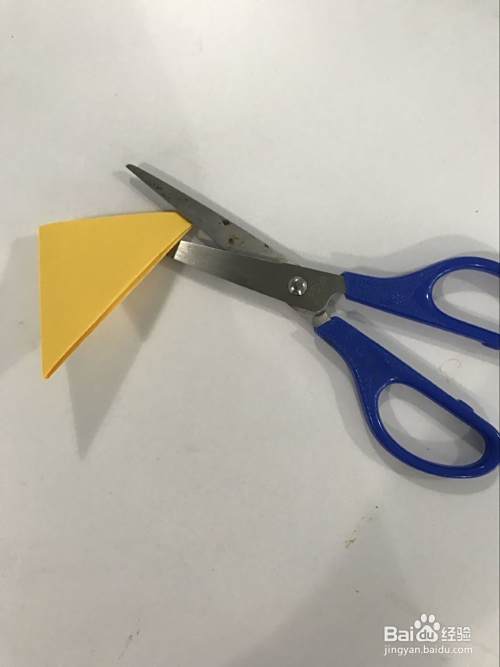 将三角形再对折,变成一个等腰三角形,再用剪刀将等腰三角形的一个锐角小幅度修剪,修剪成一个弧形。