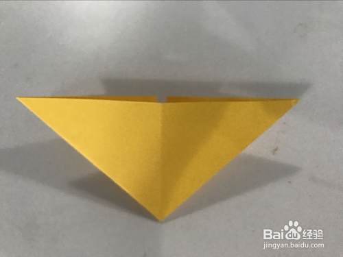 再将折下来的处在反面位置的直角向后折过去,注意折的幅度稍微大一点,让底边露出一点直角头来,如图。