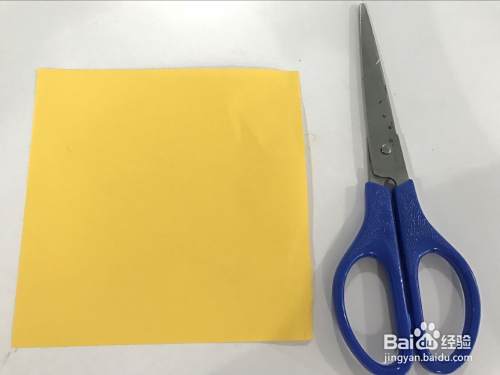 准备好必备的工具,一张正方形折纸,一把剪刀。