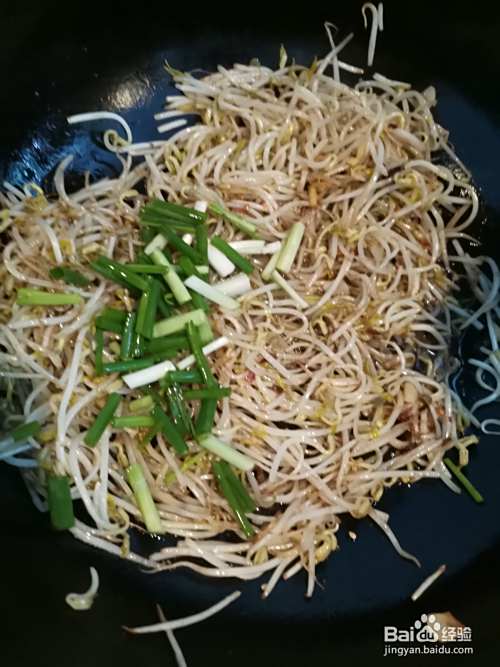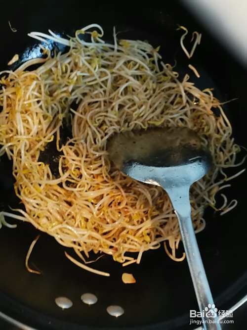 倒滤好水的豆芽倒入锅中大火翻炒,倒上香醋,使豆芽更加的香脆。