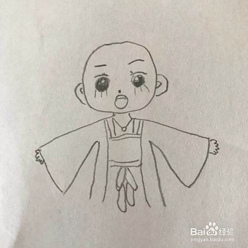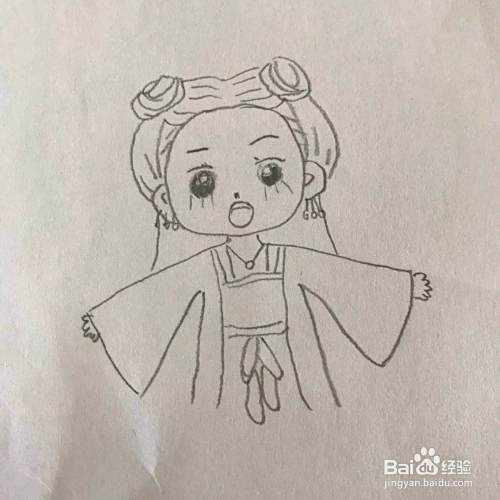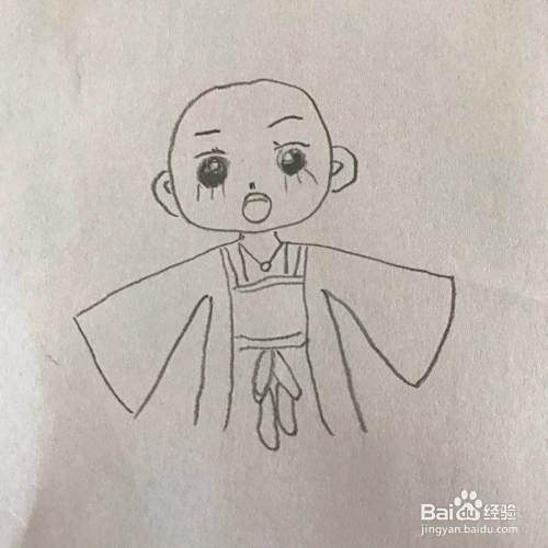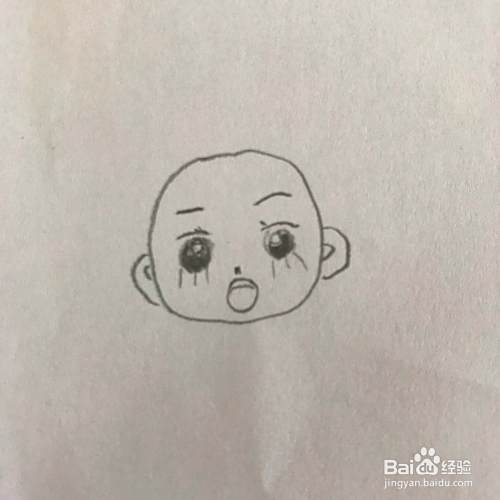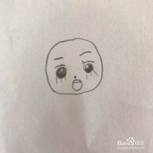 在干净的白纸上画出花千骨的头。眼睛、鼻子 、嘴巴和眉毛,见下图