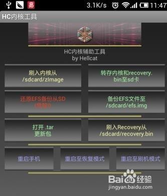 4在 HC 内核工具软件界面上点击“备份EFS分区到/sdcard/efs.img” HC 内核工具开备份efs文件,并将文件保存到内存卡根目录下