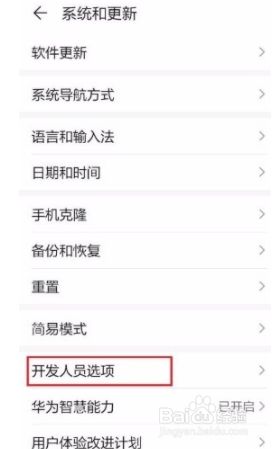 2.接着就会进入到系统和更新页面,我们在页面上找到“开发人员选项”,点击它即可进行下一步操作。