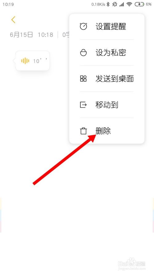 如果要删除便签里面的个别录音,则按住这个录音,然后点击删除的符号。