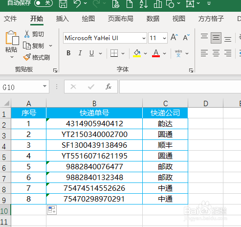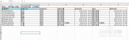 然后我们将快递单号和快递公司信息复制到表格中