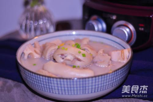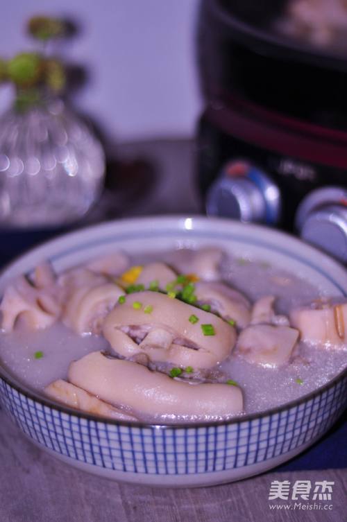 猪蹄表皮洁白、胶质很多、蹄筋软糯爽口,经常被成为“美容佳品”。小火慢煨而成的蹄花成菜酥而不烂、外形完美、入口滋糯、肥而不腻、汤汁鲜香回味。一定要有耐心、细心才能做好这道看似简单的汤菜。