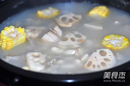 4放入芸豆、玉米、莲藕,调小火煨2个小时。