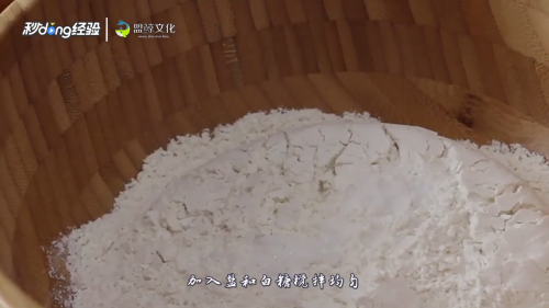 3在盆中倒入面粉,加入盐和白糖,搅拌均匀。