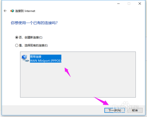 6、点【设置新连接】,点【宽带连接】,点【下一步】。