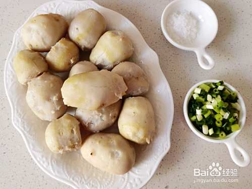 芋头扒皮,香葱切碎,调料备好,芋头根据大小大的可以一分为二