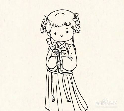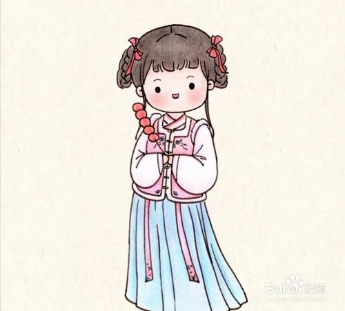 最后在精细一下,这样一个汉服小姑娘就大功告成啦!