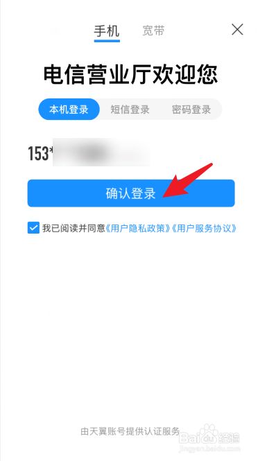 用自己名下的任意电信手机号码,点击【确认登录】。