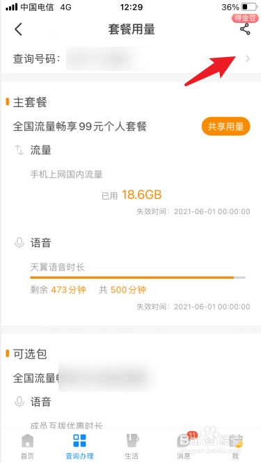 找到【套餐用量】,点击进入。