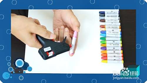 接着给蜡笔涂上胶水,使其固定在画纸上。