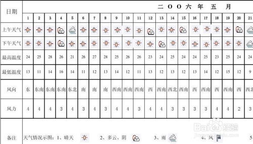 接着依次填写“日期”,“天气”,“ 最高气温”,“最低气温”。