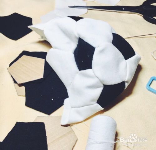 继续缝,始终让五块白布围绕一块黑布,日然而然就缝成球体了