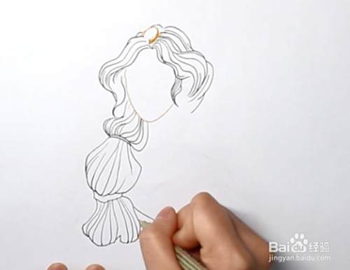 首先我们画出茉莉公主的头发,她的头发是大的波浪卷,粗粗的辫子在侧面,要一点点画出头发的纹理哦!
